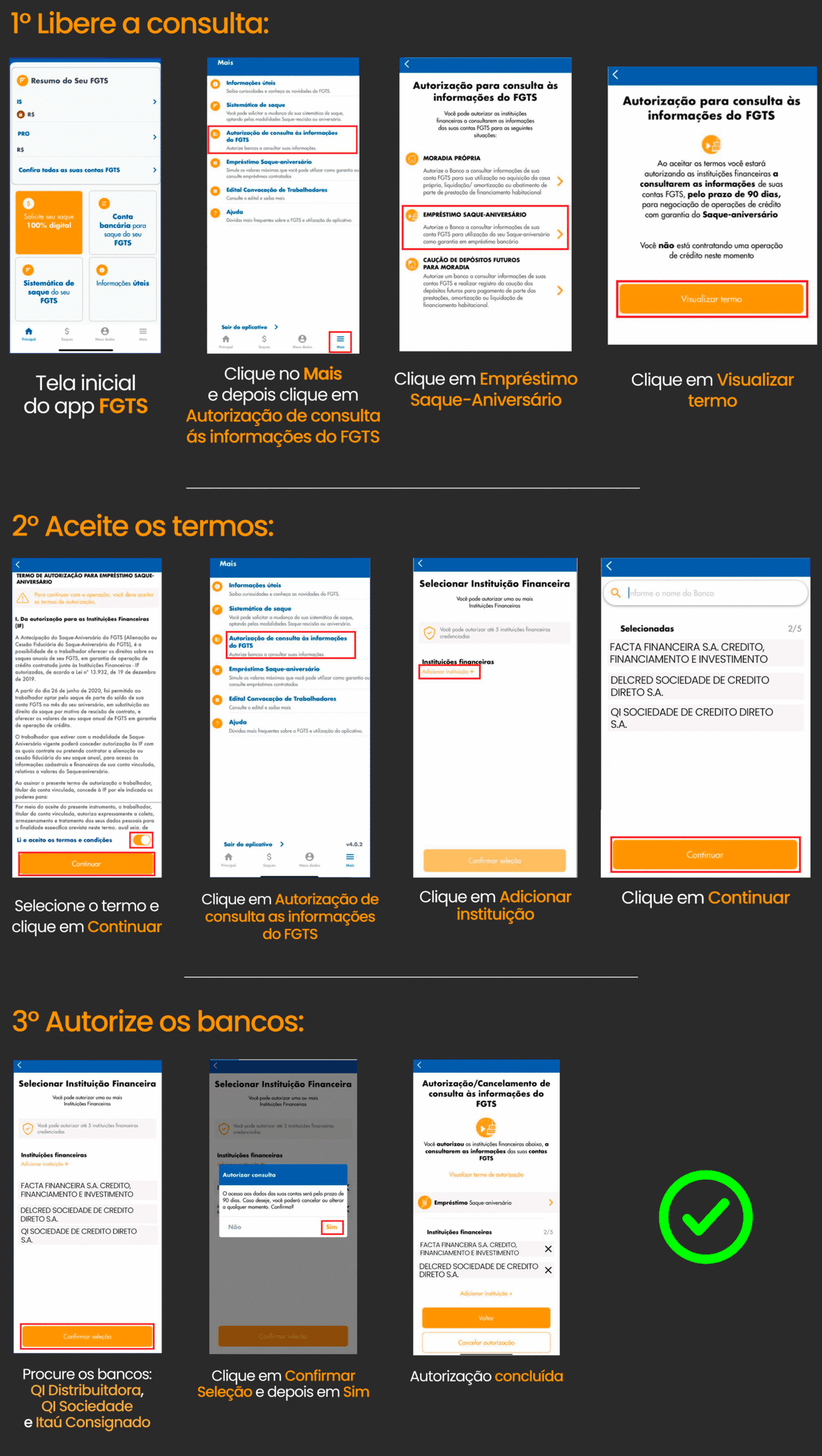 • Parcelas anuais pagas diretamente da conta vinculada FGTS no dia da disponibilização pela sistemática do Saque Aniversário.
